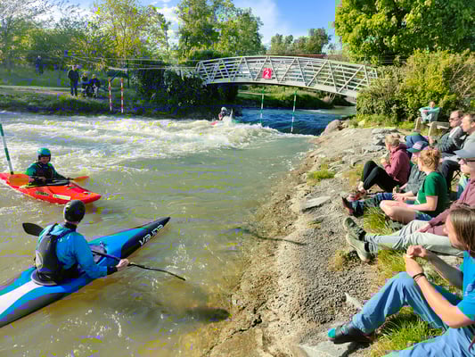 Dieses Jahr führte das Osterlager des KCBM wieder einmal in den wohl französischsten Ortsnamen überhaupt: nach Saint-Pierre-de-Bœuf – zu den Eaux Vives, wie das Wildwasser dort genannt wird. Lebhafter als im Hallenbad in Magglingen, wo ich im Winter die Kajakrolle erlernt hatte, war das Wasser im Osterlager allemal. Für mich bedeutete das Lager gleich einen dreifachen Schritt hinaus aus der Komfortzone: Erstens traf ich auf eine mir völlig neue Gruppe von Menschen, zweitens musste ich mich wieder einmal auf die Tücken des Zeltens einlassen, und drittens nahm ich an einem sportlichen Lager teil, statt wie sonst gemütlich über die Ostertage ein Buch zu lesen. Doch wie so oft lohnte es sich auch dieses Mal, die Komfortzone zu verlassen – und es stellte sich heraus, dass keine dieser drei Herausforderungen wirklich eine war.