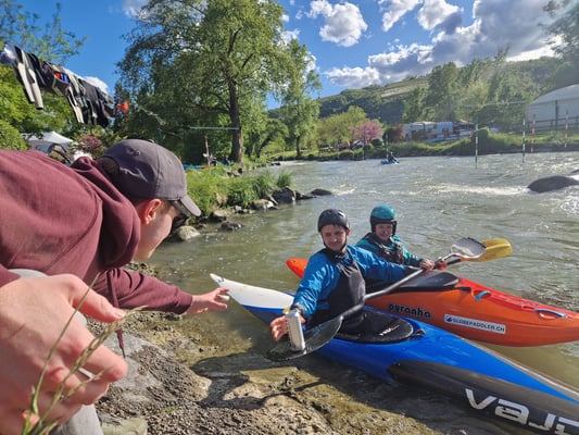 Im Zentrum des Osterlagers stand natürlich das Paddeln auf dem Wildwasser. Dank der grossartigen Betreuung der Profipaddler Philip, Sebi und Mario lernte ich, das Wasser zu «lesen» und von Kehrwasser zu Kehrwasser flussaufwärts zu paddeln. Die Stimmung war dabei nie verbissen oder überfordernd, sondern stets ermutigend – was in einem Sportlager nicht selbstverständlich ist. Und als ich einmal einen Erholungstag einlegen musste, konnte ich den anderen zuschauen, wie sie spielerisch über Walzen und Wellen manövrierten, flussauf- und flussabwärts unterwegs waren, bewusst oder unabsichtlich eine Rolle vollzogen – und dabei immer eine grosse Lebensfreude ausstrahlten.